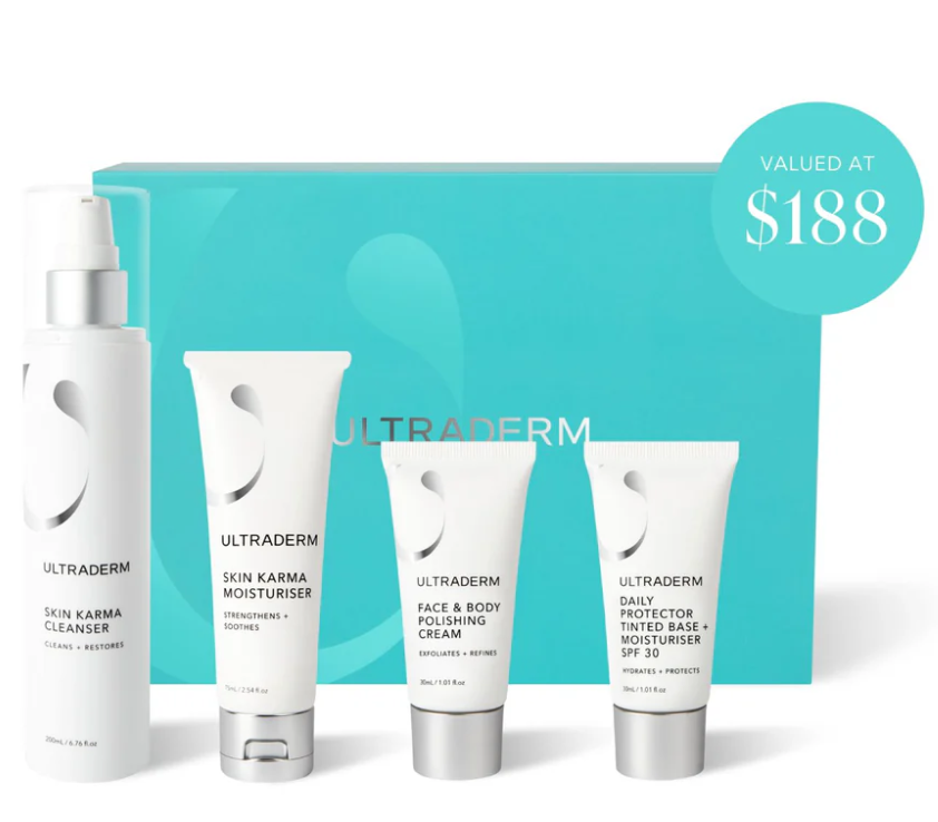 Get that holiday glow with The Karma Selection. This complete regimen, valued at $188, features full-size and deluxe mini-size products that work together to calm and hydrate dry, sensitive skin. Say hello to revitalised, glowing skin this season.